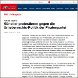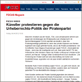 "Focus" vom 06.04.2012 "Künstler protestieren gegen Urheberrechts-Politik der Piratenpartei"